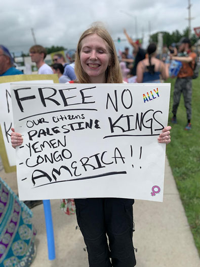 On “No Kings Day,” June 14, 2025, over five million demonstrated in over 2,000 locations in the United States against Donald Trump's attempted authoritarian takeover of the United States government and a variety of his illegal or unpopular policies. Over 500 turned out in Rolla, Missouri — perhaps the largest protest ever in Rolla. Photos below.